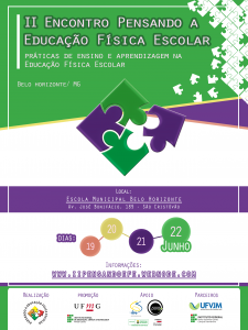 Nos dias 19 a 22 de junho de 2019, na Escola Municipal Belo Horizonte,será realizado o II Encontro Pensando a Educação Física Escolar. O evento é uma realização do grupo de estudo e pesquisa Pensando a Educação Física Escolar, composto por professoras(es) de Educação Física das redes pública e particular de Minas Gerais, do Centro Pedagógico, do COLTEC e da EEFFTO da UFMG, do Instituto Federal de Minas Gerais e da Universidade Federal dos Vales do Jequitinhonha e do Mucuri.